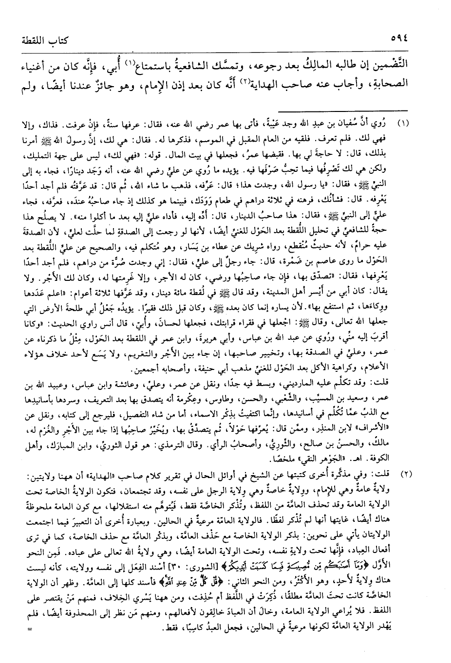قلت: وقد تكلَّم عليه المارديني، وبسط فيه جدًا، ونقل عن عمر، وعليِّ، وعائشة وابن عباس، وعبيد الله بن عمر، وسعيد بن المسيِّب، والشَّعْبي، والحسن، وطاوس، وعِكرمة أنه يتصدق بها بعد التعريف، وسردها بأسانيدِها مع الذبِّ عمَّا تُكُلِّم في أسانيدها، وإنَّما اكتفيتُ بذِكْر الاسماء، أما من شاء التفصيل، فليرجع إلى كتابه، ونقل عن "الأشراف" لابن المنذِر، وممَّن قال: يُعرِّفها حَوْلًا، ثُم يتصدَّقُ بها، ويُخَيِّرُ صاحِبُها إذا جاء بين الأَجْرِ والغُرْم له، مالك، والحسنُ بن صالح، والثَّورِيُّ، وأصحابُ الرأي. وقال الترمذي: هو قول الثوريِّ، وابن المبارَك، وأهل الكوفة. اهـ. "الجَوْهر النقي" ملخصًا.
