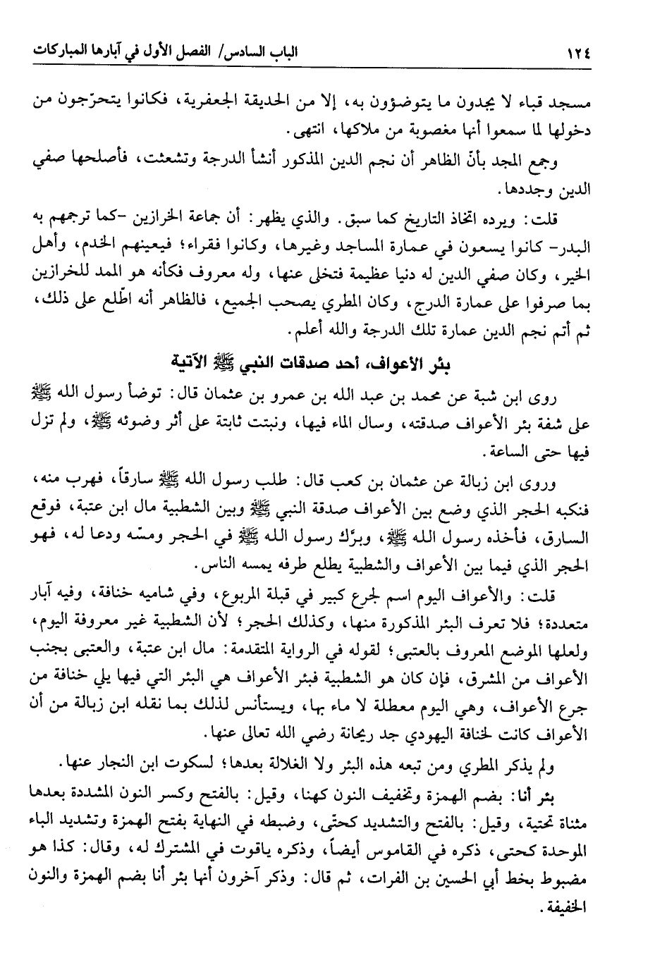 بئر الأعواف، أحد صدقات النبي صلى الله عليه وسلم الآتية