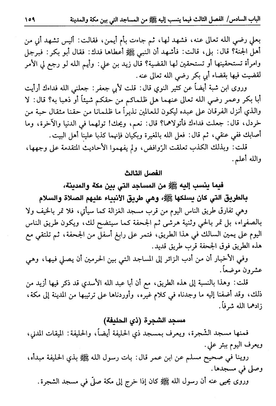 الفصل الثالث فيما ينسب إليه ص من المساجد التي بين مكة والمدينة،