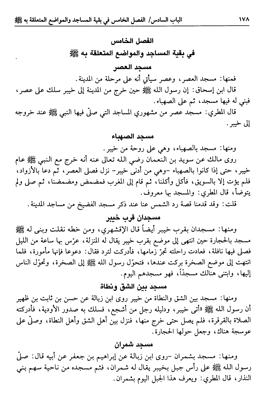 الفصل الخامس في بقية المساجد والمواضع المتعلقة به ص