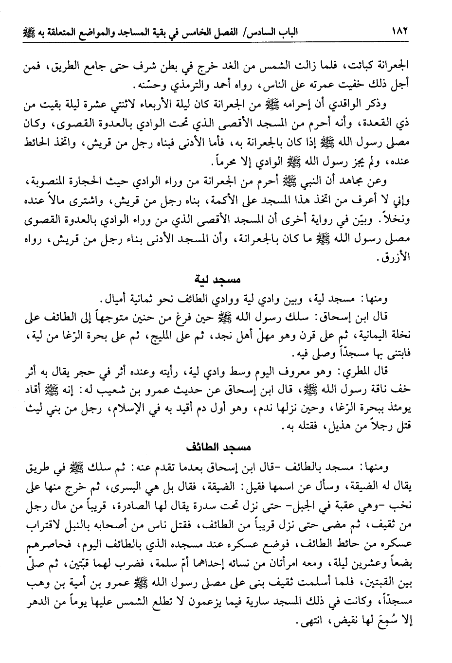قال ابن إسحاق: سلك رسول الله صلى الله عليه وسلم حين فرغ من حنين متوجها إلى الطائف على نخلة اليمانية، ثم على قرن وهو مهلّ أهل نجد، ثم على المليج، ثم على بحرة الرّغا من لية، فابتنى بها مسجدّا وصلى فيه.