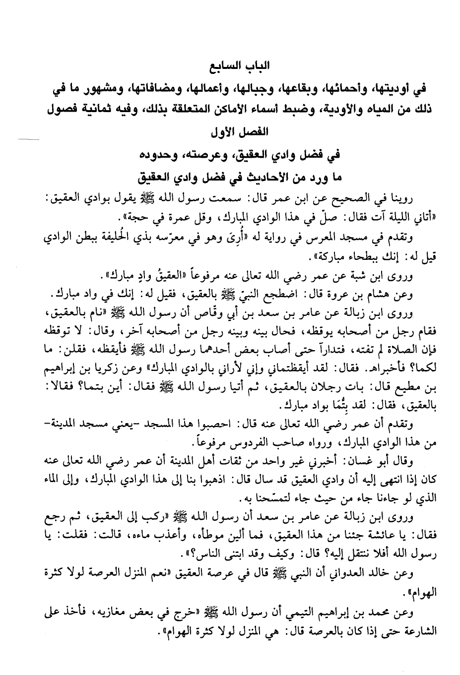 الفصل الأول في فضل وادي العقيق، وعرصته، وحدوده