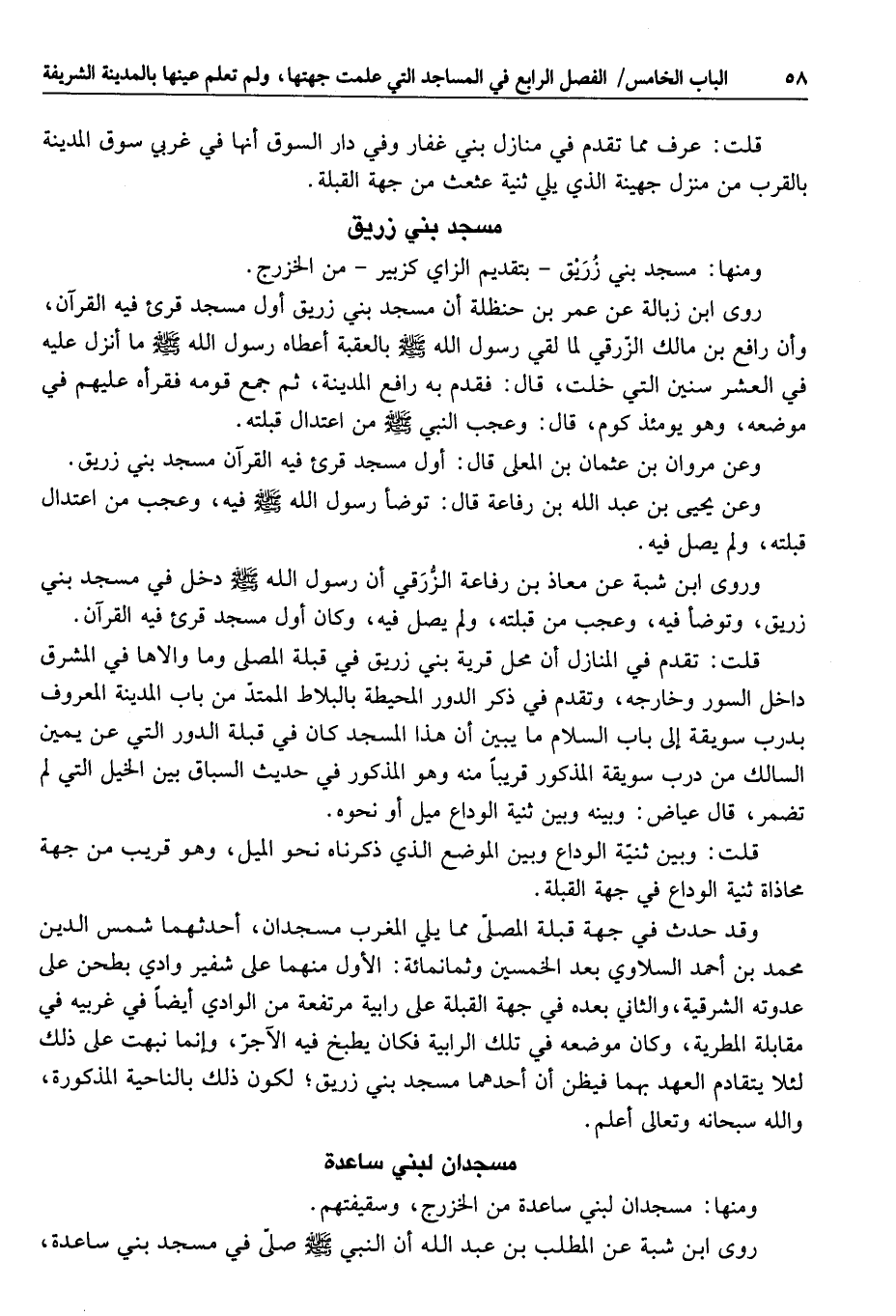 ومنها: مسجد بني زريق- بتقديم الزاي كزبير- من الخزرج.