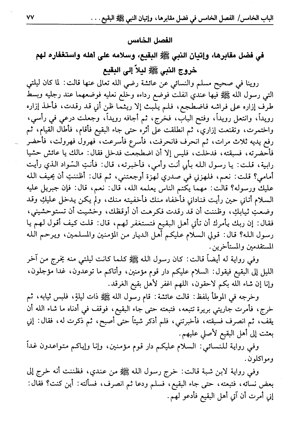 الفصل الخامس: خروج النبي ص ليلا إلى البقيع