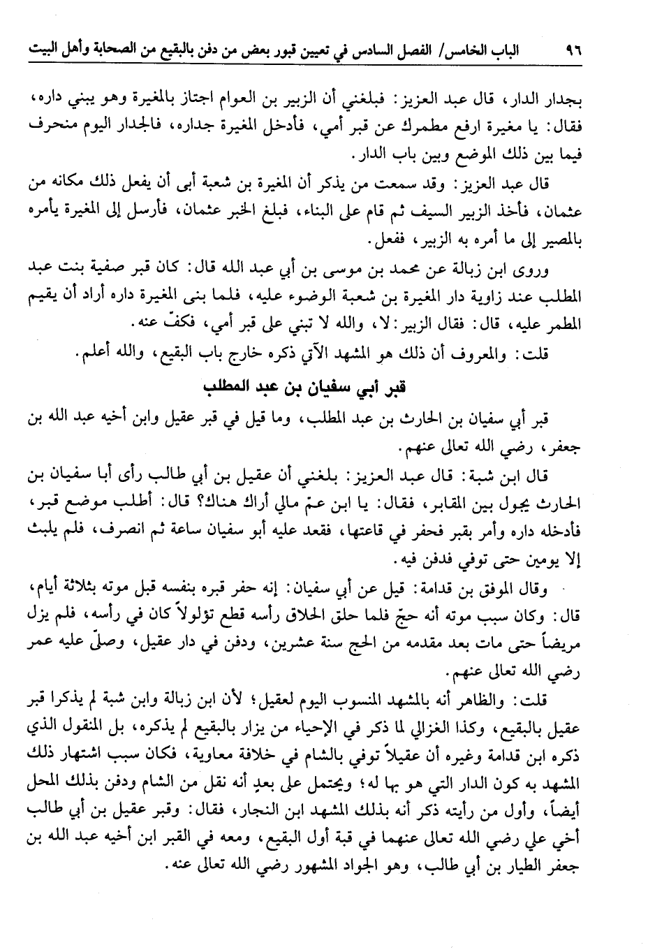 قبر أبي سفيان بن الحارث بن عبد المطلب، وما قيل في قبر عقيل وابن أخيه عبد الله بن جعفر، رضي الله تعالى عنهم.