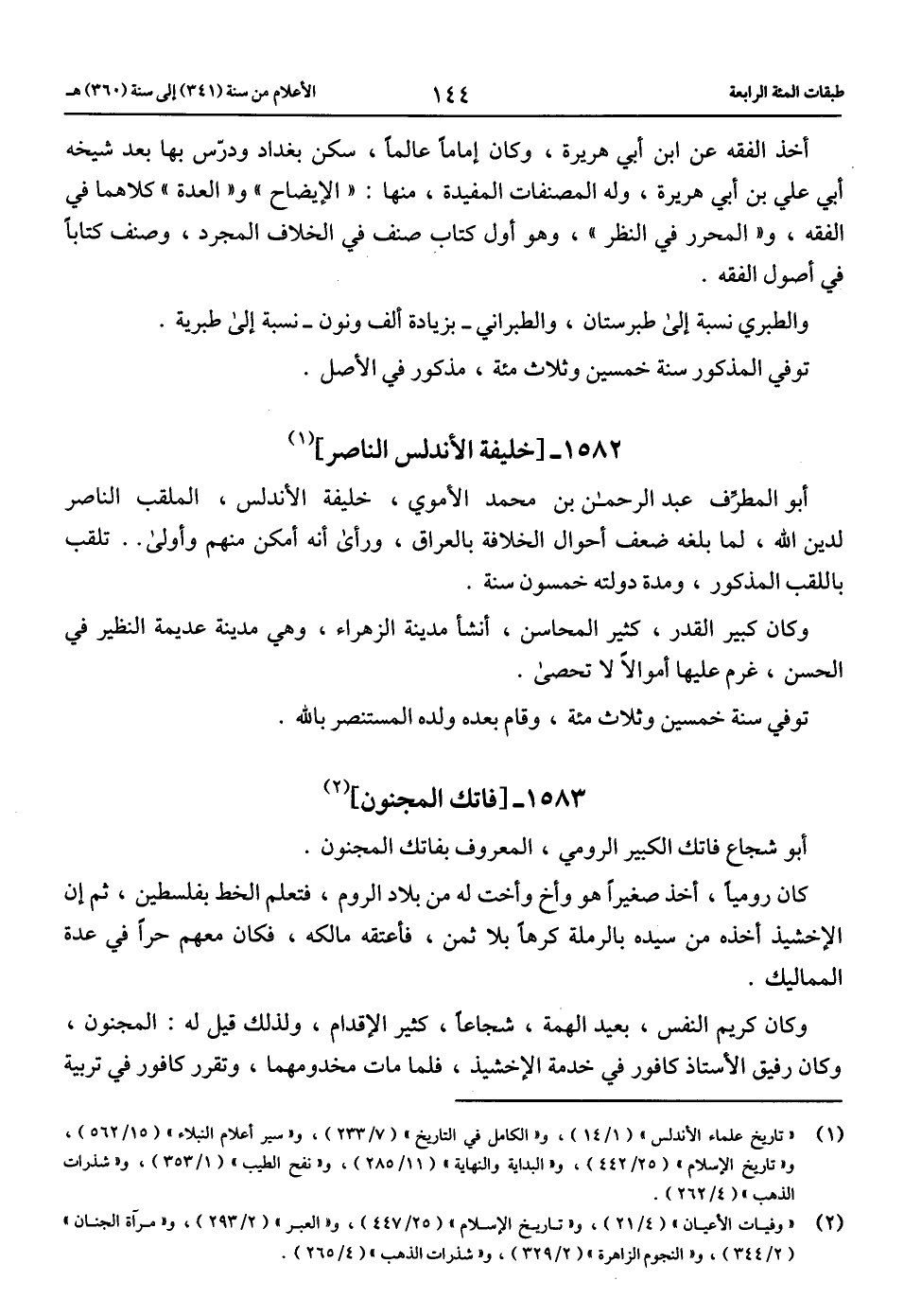 (1) «تاريخ علماء الأندلس» (1/ 14)، و «الكامل في التاريخ» (7/ 233)، و «سير أعلام النبلاء» (15/ 562)، و «تاريخ الإسلام» (25/ 442)، و «البداية والنهاية» (11/ 285)، و «نفح الطيب» (1/ 353)، و «شذرات الذهب» (4/ 262).