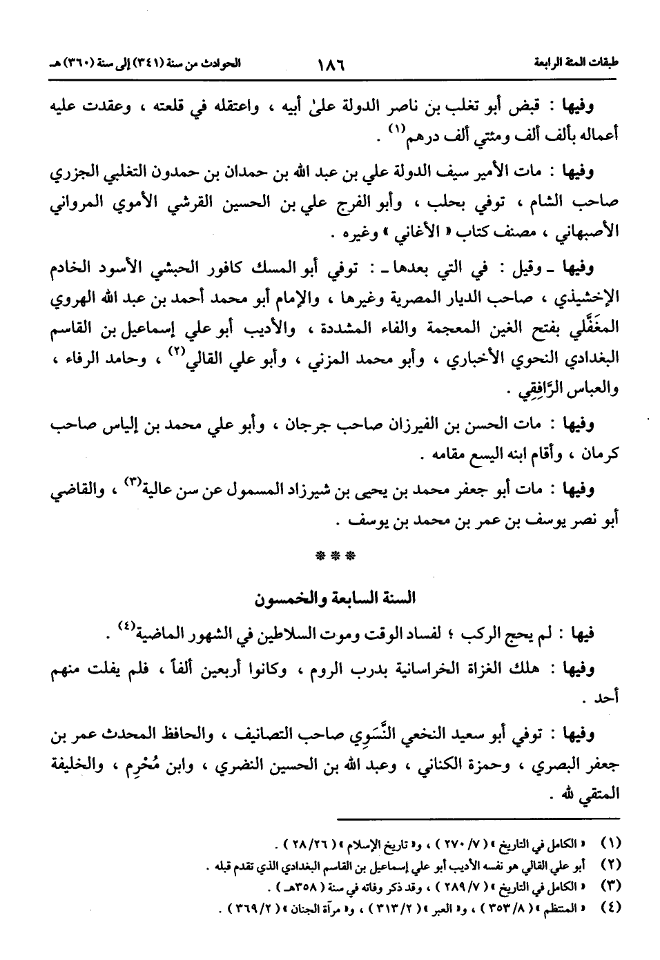 (3) «الكامل في التاريخ» (7/ 289)، وقد ذكر وفاته في سنة (358 هـ).