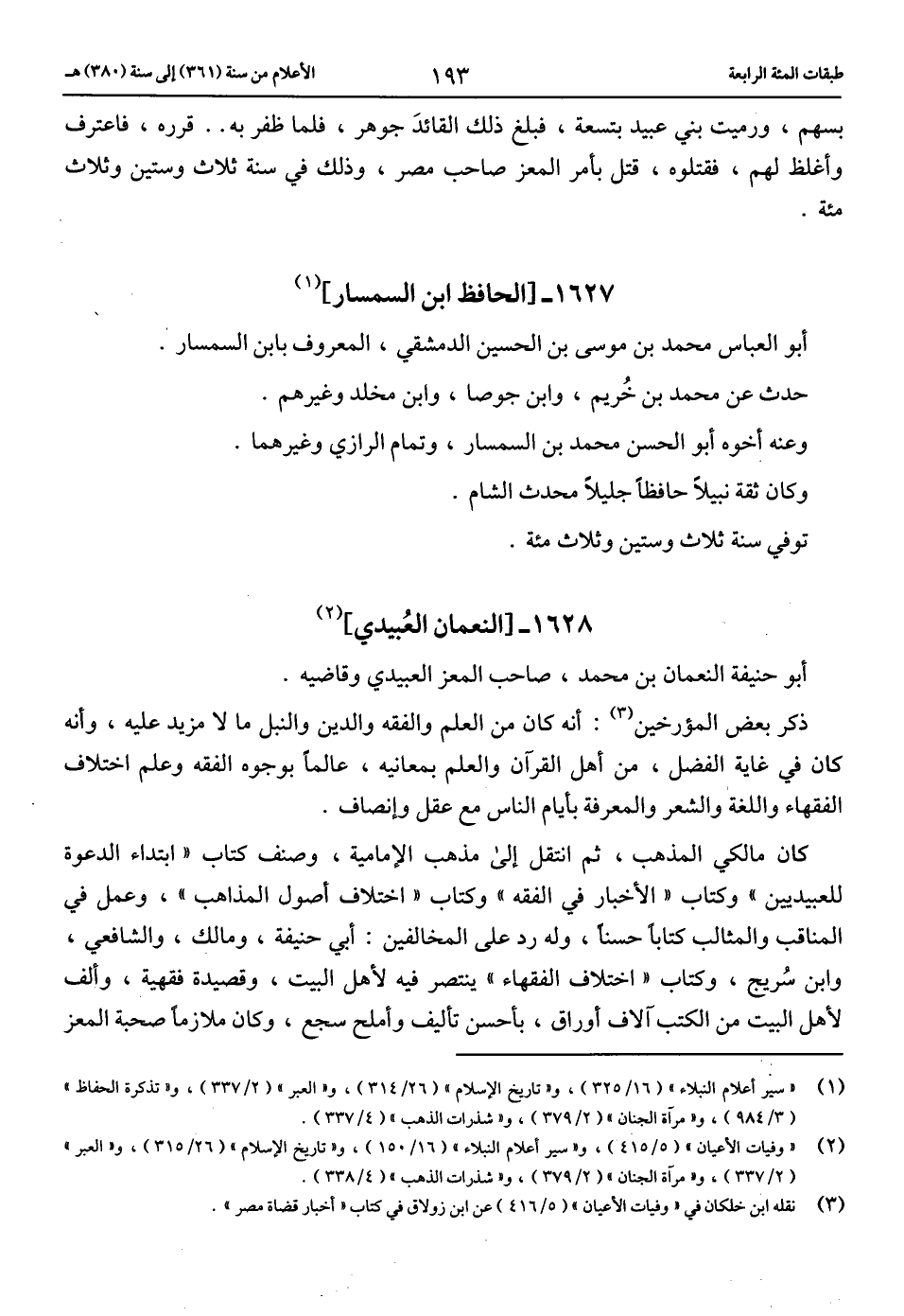 (1) «سير أعلام النبلاء» (16/ 325)، و «تاريخ الإسلام» (26/ 314)، و «العبر» (2/ 337)، و «تذكرة الحفاظ» (3/ 984)، و «مرآة الجنان» (2/ 379)، و «شذرات الذهب» (4/ 337).