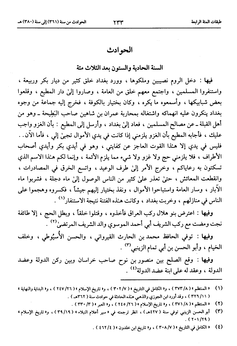 (1) «المنتظم» (8/ 373)، و «الكامل في التاريخ» (7/ 302)، و «تاريخ الإسلام» (26/ 247)، و «البداية والنهاية» (11/ 326)، وقد أورد ابن الجوزي والذهبي هذه الحادثة في حوادث سنة (362 هـ).