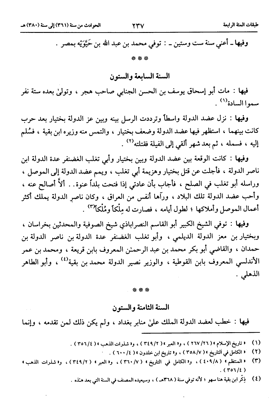 (4) ذكر ابن بقية هنا سهو؛ لأنه توفي سنة (368 هـ)، وسيعيده المصنف في السنة التي بعد هذه.