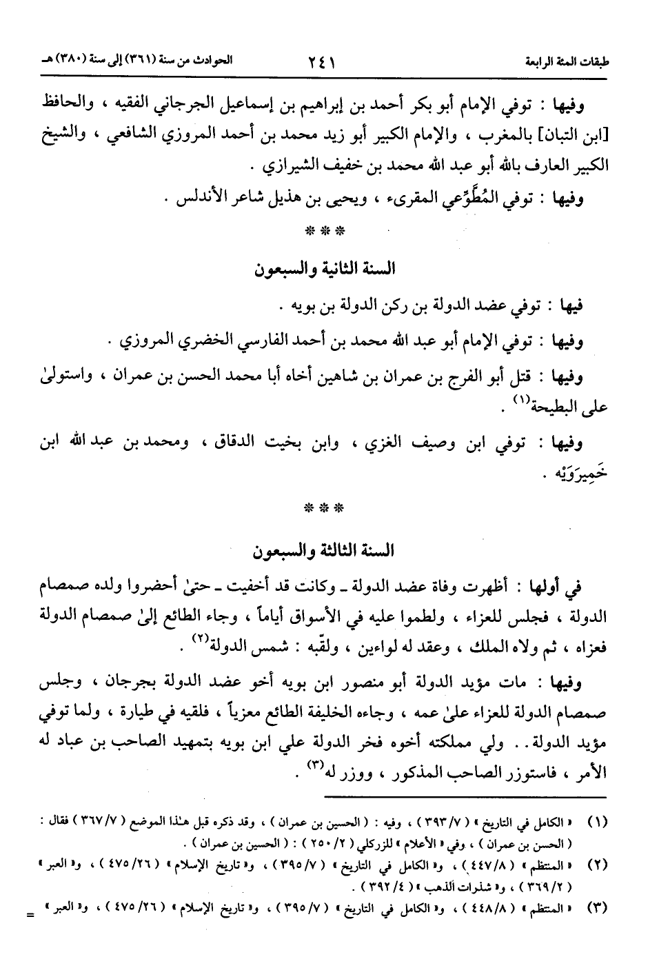 (3) «المنتظم» (8/ 448)، و «الكامل في التاريخ» (7/ 395)، و «تاريخ الإسلام» (26/ 475)، و «العبر» -
