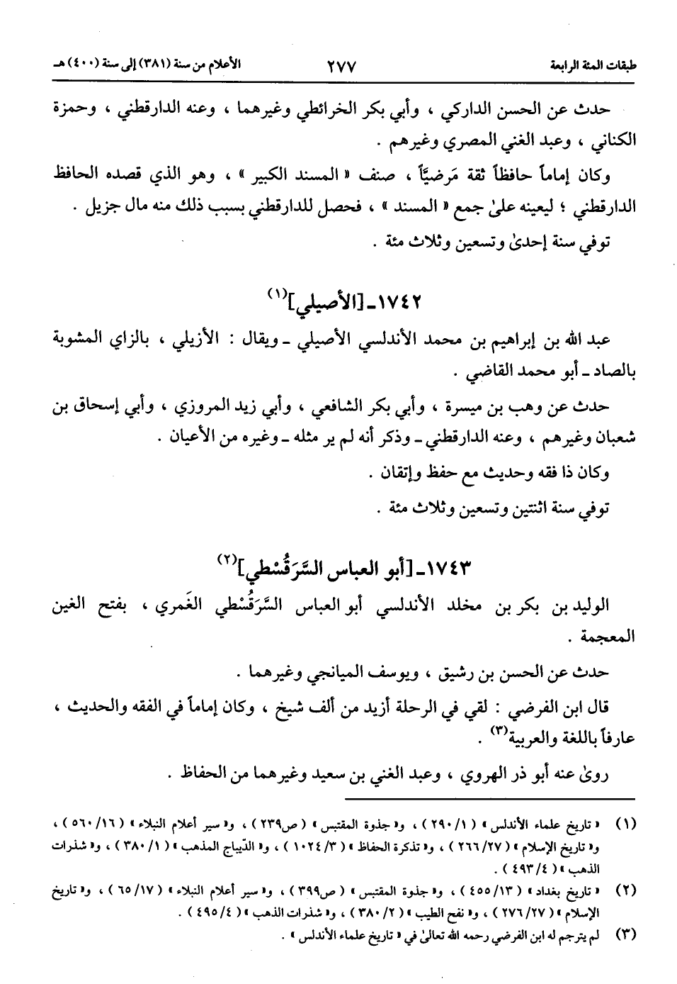 (2) «تاريخ بغداد» (13/ 455)، و «جذوة المقتبس» (ص 399)، و «سير أعلام النبلاء» (17/ 65)، و «تاريخ الإسلام» (27/ 276)، و «نفح الطيب» (2/ 380)، و «شذرات الذهب» (4/ 495).