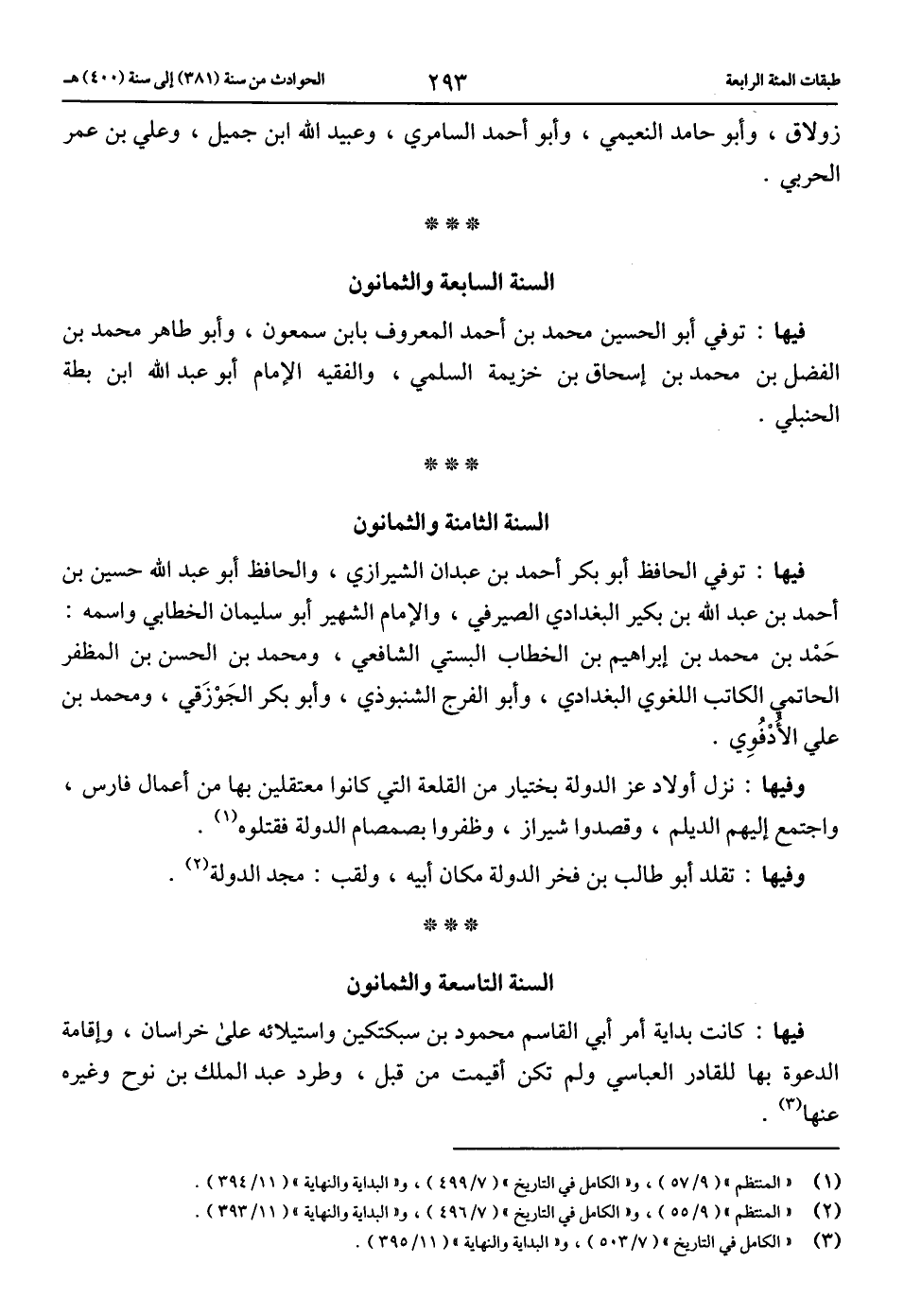 (2) «المنتظم» (9/ 55)، و «الكامل في التاريخ» (7/ 496)، و «البداية والنهاية» (11/ 393).