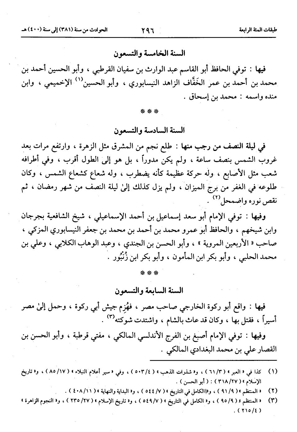 (3) «المنتظم» (9/ 95)، و «الكامل في التاريخ» (7/ 549)، و «تاريخ الإسلام» (27/ 235)، و «النجوم الزاهرة» (4/ 215).