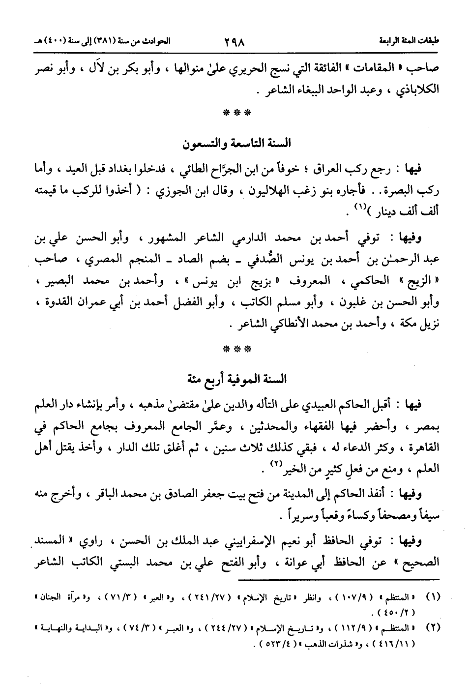 (1) «المنتظم» (9/ 107)، وانظر «تاريخ الإسلام» (27/ 241)، و «العبر» (3/ 71)، و «مرآة الجنان» (2/ 450).