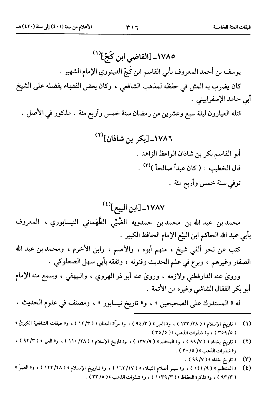 (4) «المنتظم» (9/ 141)، و «سير أعلام النبلاء» (17/ 162)، و «تاريخ الإسلام» (28/ 122)، و «العبر» (3/ 93)، و «تذكرة الحفاظ» (3/ 1039)، و «شذرات الذهب» (5/ 33).