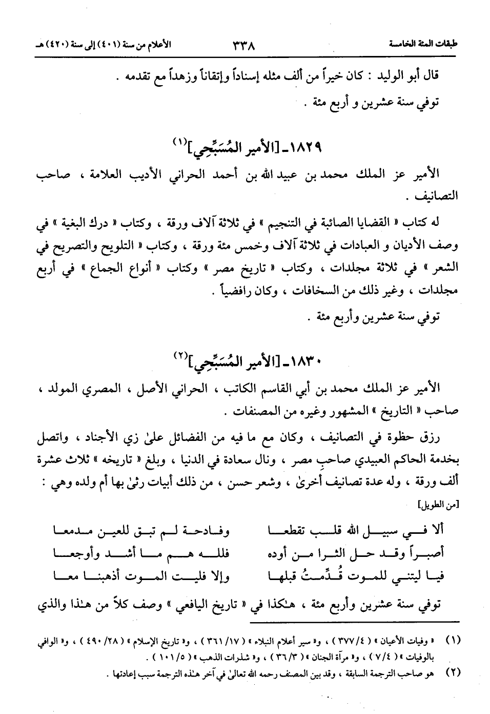 توفي سنة عشرين وأربع مائة، هكذا في «تاريخ اليافعي» وصف كلا من هذا والذي