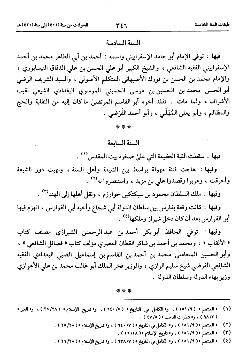 (4) «المنتظم» (9/ 151)، و «الكامل في التاريخ» (7/ 638)، و «تاريخ الإسلام» (28/ 26).