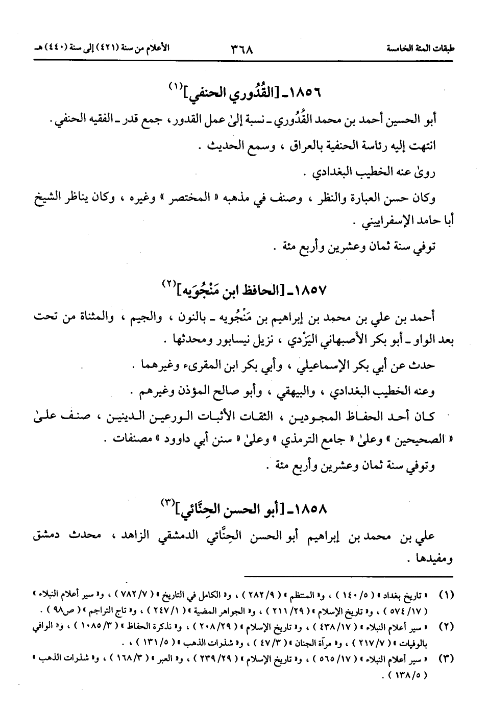 (1) «تاريخ بغداد» (5/ 140)، و «المنتظم» (9/ 282)، و «الكامل في التاريخ» (7/ 782)، و «سير أعلام النبلاء» (17/ 574)، و «تاريخ الإسلام» (29/ 211)، و «الجواهر المضية» (1/ 247)، و «تاج التراجم» (ص 98).