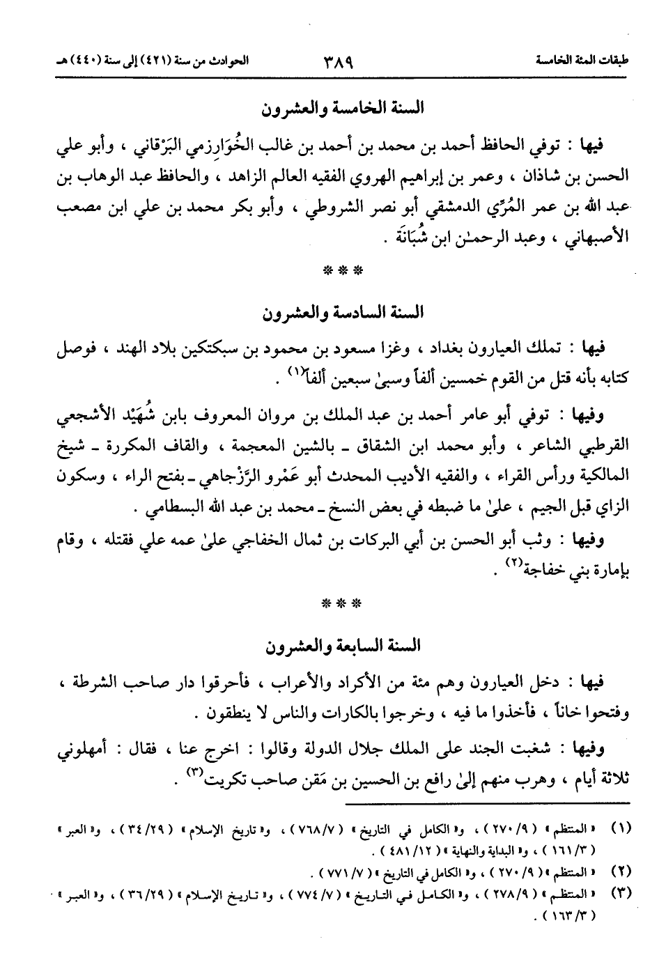 (3) «المنتظم» (9/ 278)، و «الكامل في التاريخ» (7/ 774)، و «تاريخ الإسلام» (29/ 36)، و «العبر» (3/ 163).