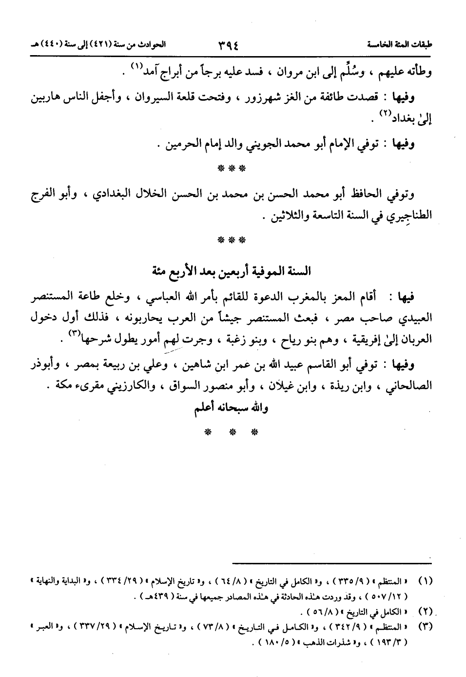(1) «المنتظم» (9/ 335)، و «الكامل في التاريخ» (8/ 64)، و «تاريخ الإسلام» (29/ 334)، و «البداية والنهاية» (12/ 507)، وقد وردت هذه الحادثة في هذه المصادر جميعها في سنة (439 هـ).