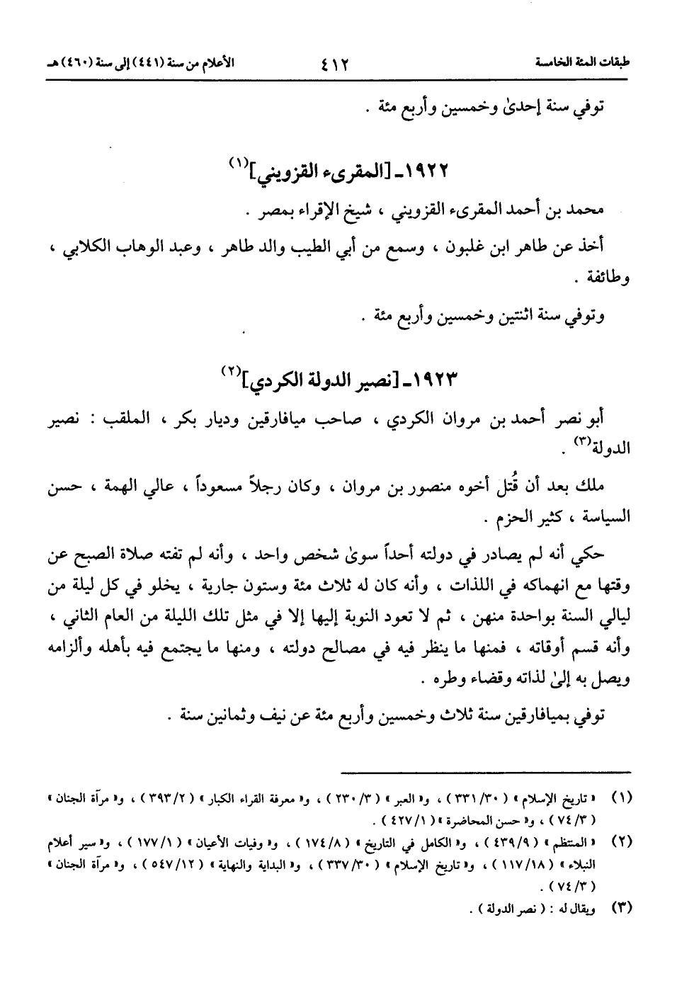 (2) «المنتظم» (9/ 439)، و «الكامل في التاريخ» (8/ 174)، و «وفيات الأعيان» (1/ 177)، و «سير أعلام النبلاء» (18/ 117)، و «تاريخ الإسلام» (30/ 337)، و «البداية والنهاية» (12/ 547)، و «مرآة الجنان» (3/ 74).