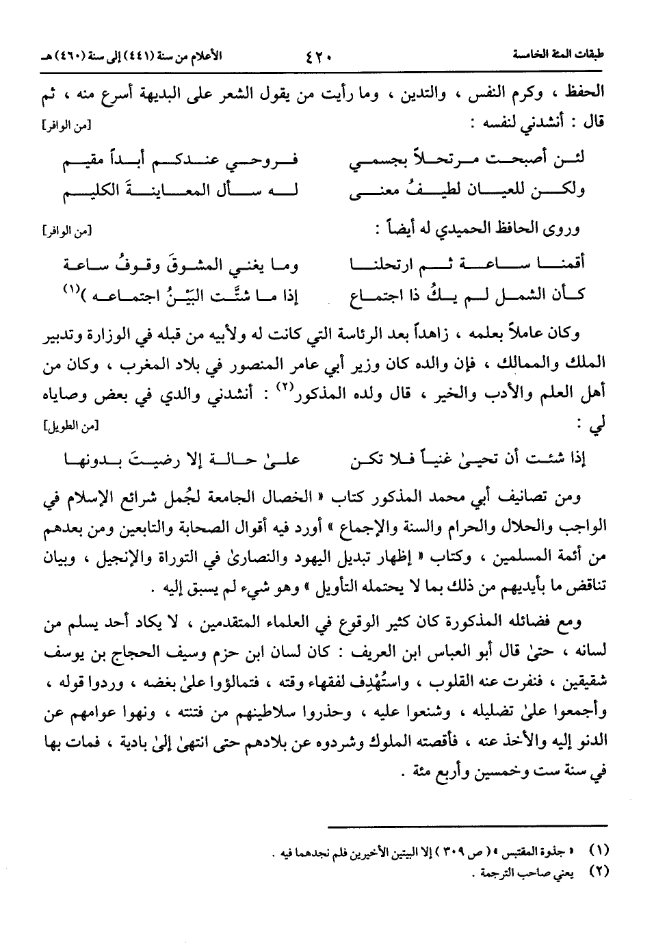 (1) «جذوة المقتبس» (ص 309) إلا البيتين الأخيرين فلم نجدهما فيه.