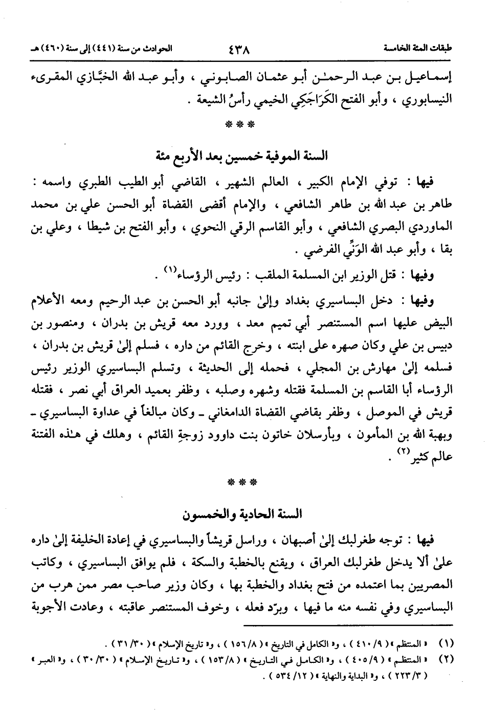 (1) «المنتظم» (9/ 410)، و «الكامل في التاريخ» (8/ 156)، و «تاريخ الإسلام» (30/ 31).