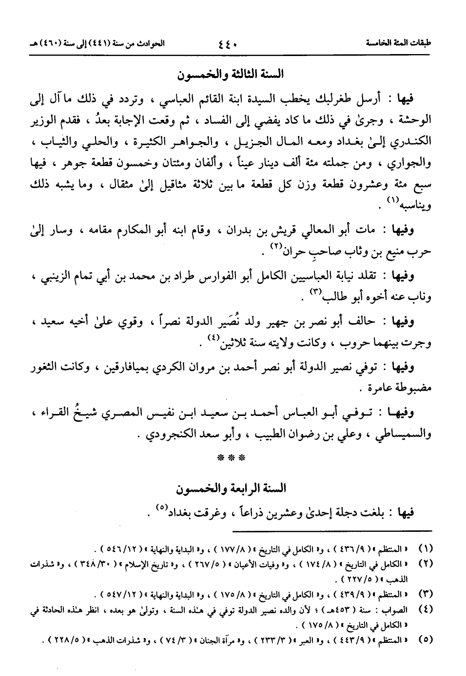 (1) «المنتظم» (9/ 436)، و «الكامل في التاريخ» (8/ 177)، و «البداية والنهاية» (12/ 546).