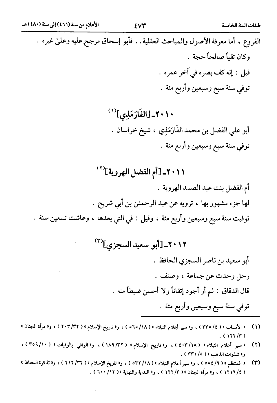 (1) «الأنساب» (4/ 335)، و «سير أعلام النبلاء» (18/ 565)، و «تاريخ الإسلام» (32/ 203)، و «مرآة الجنان» (3/ 122).