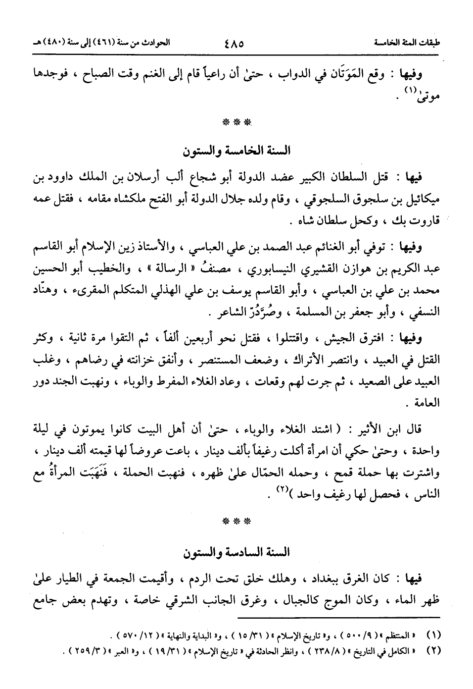 (1) «المنتظم» (9/ 500)، و «تاريخ الإسلام» (31/ 15)، و «البداية والنهاية» (12/ 570).