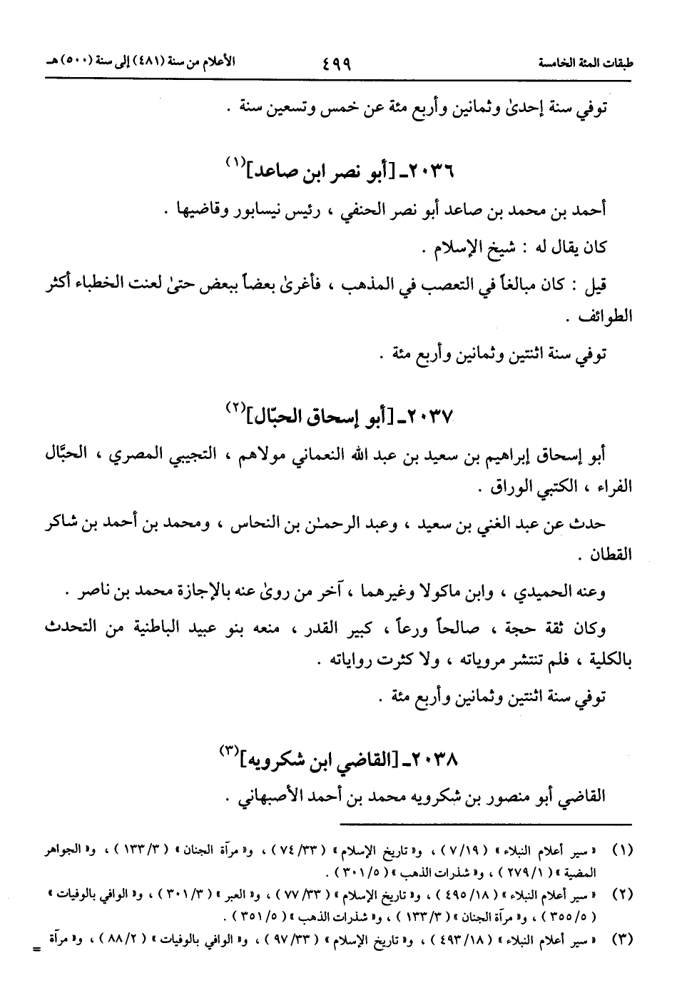 (3) «سير أعلام النبلاء» (18/ 493)، و «تاريخ الإسلام» (33/ 97)، و «الوافي بالوفيات» (2/ 88)، و «مرآة-