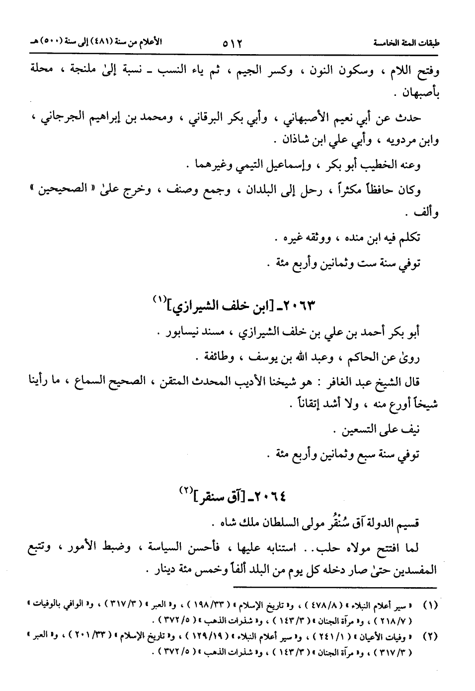 (2) «وفيات الأعيان» (1/ 241)، و «سير أعلام النبلاء» (19/ 129)، و «تاريخ الإسلام» (33/ 201)، و «العبر» (3/ 317)، و «مرآة الجنان» (3/ 143)، و «شذرات الذهب» (5/ 372).