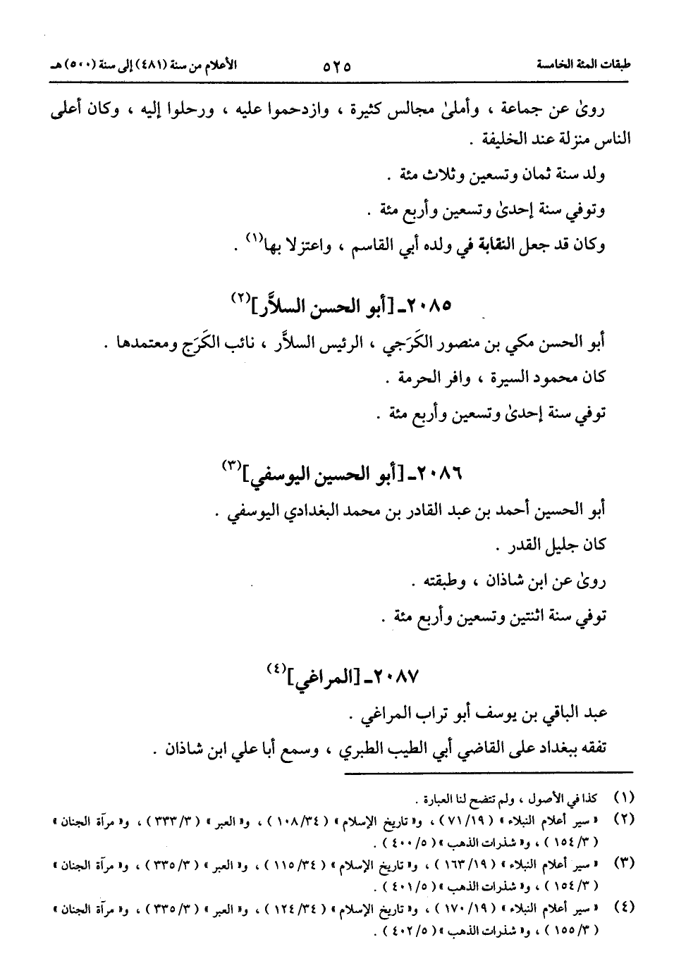 (4) «سير أعلام النبلاء» (19/ 170)، و «تاريخ الإسلام» (34/ 124)، و «العبر» (3/ 335)، و «مرآة الجنان» (3/ 155)، و «شذرات الذهب» (5/ 402).
