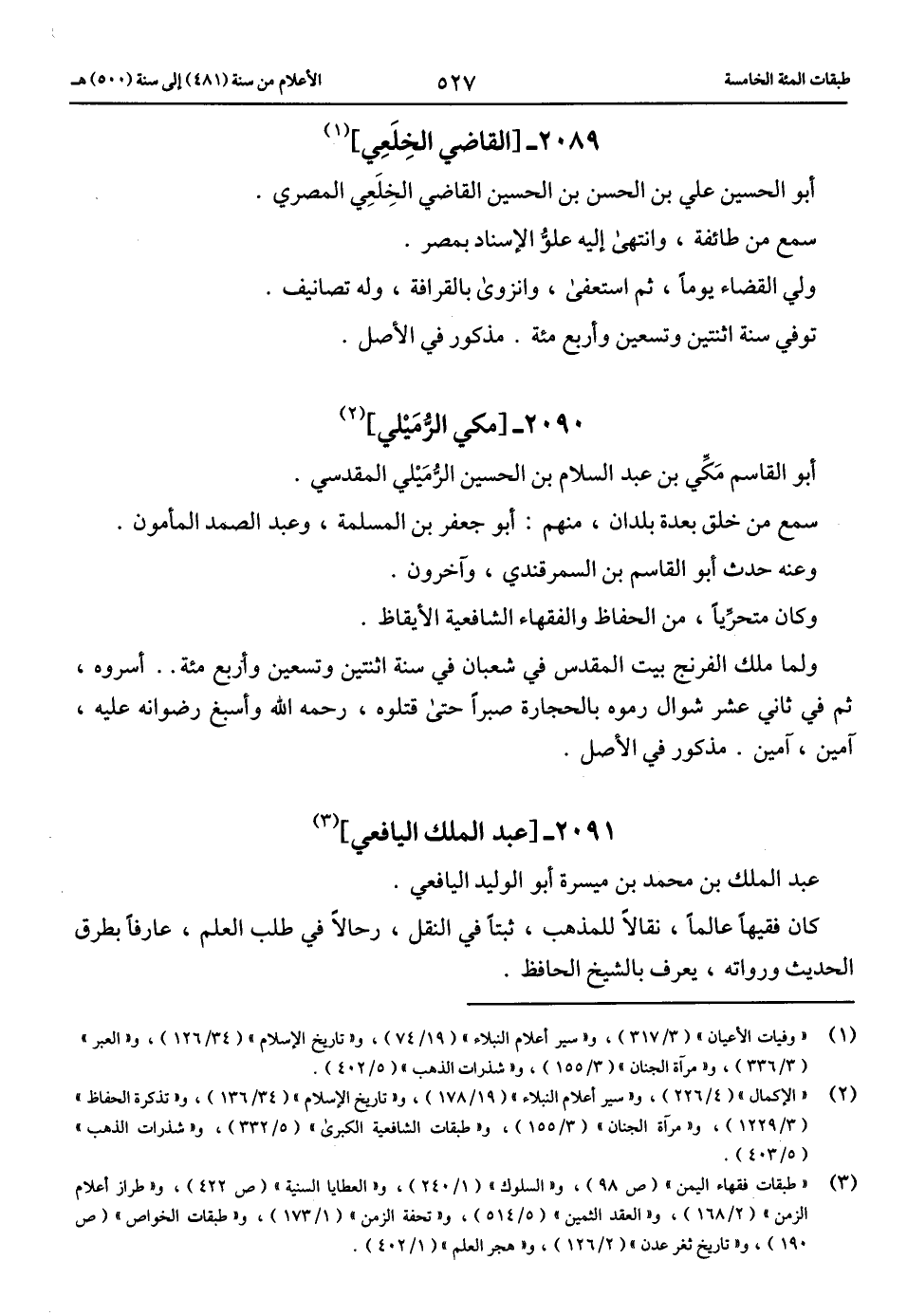 (2) «الإكمال» (4/ 226)، و «سير أعلام النبلاء» (19/ 178)، و «تاريخ الإسلام» (34/ 136)، و «تذكرة الحفاظ» (3/ 1229)، و «مرآة الجنان» (3/ 155)، و «طبقات الشافعية الكبرى» (5/ 332)، و «شذرات الذهب» (5/ 403).