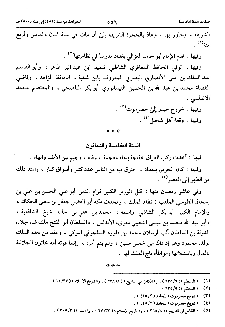 (1) «المنتظم» (9/ 635)، و «الكامل في التاريخ» (8/ 338)، و «تاريخ الإسلام» (33/ 15).
