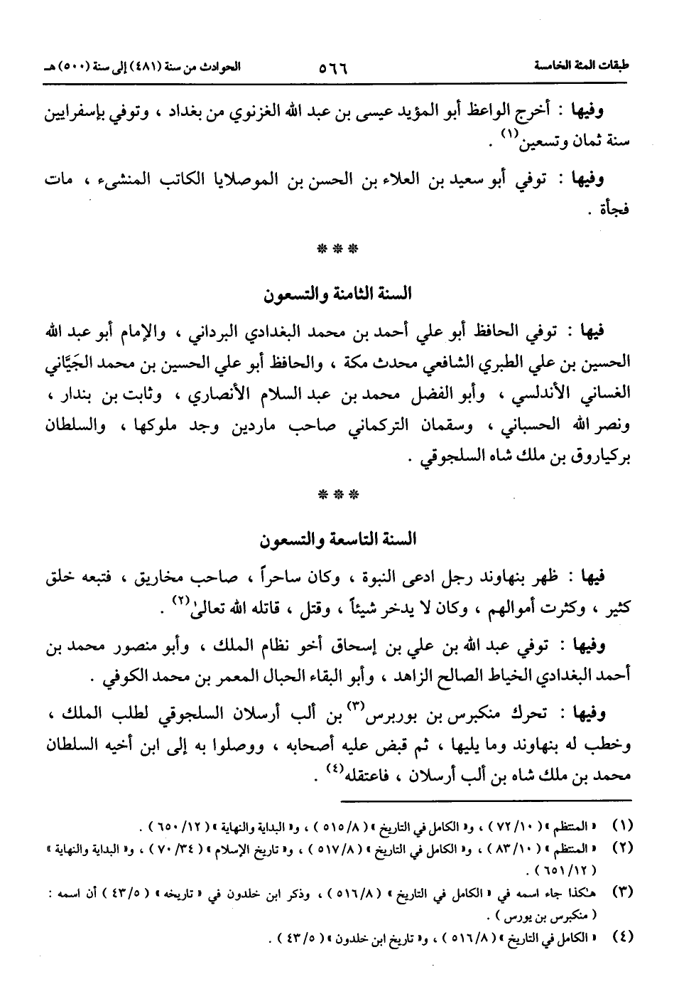 (2) «المنتظم» (10/ 83)، و «الكامل في التاريخ» (8/ 517)، و «تاريخ الإسلام» (34/ 70)، و «البداية والنهاية» (12/ 651).
