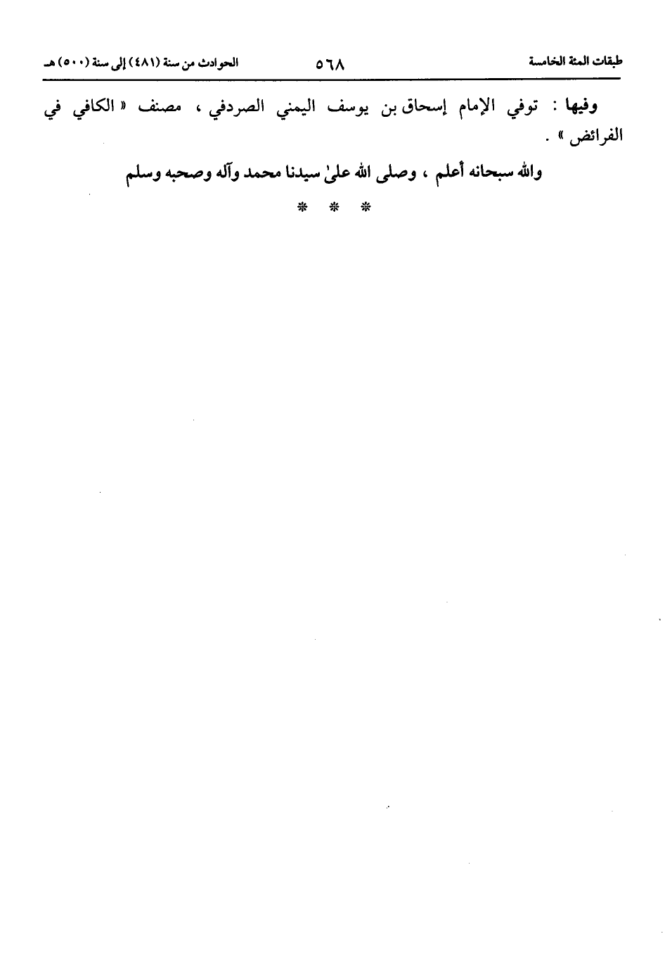 وفيها: توفي الإمام إسحاق بن يوسف اليمني الصردفي، مصنف «الكافي في الفرائض».