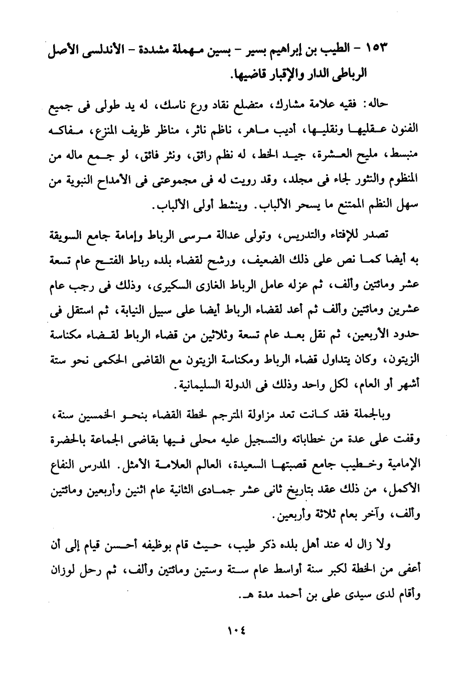 153 - الطيب بن إبراهيم بسير -بسين مهملة مشددة- الأندلسى الأصل الرباطى الدار والإقبار قاضيها.