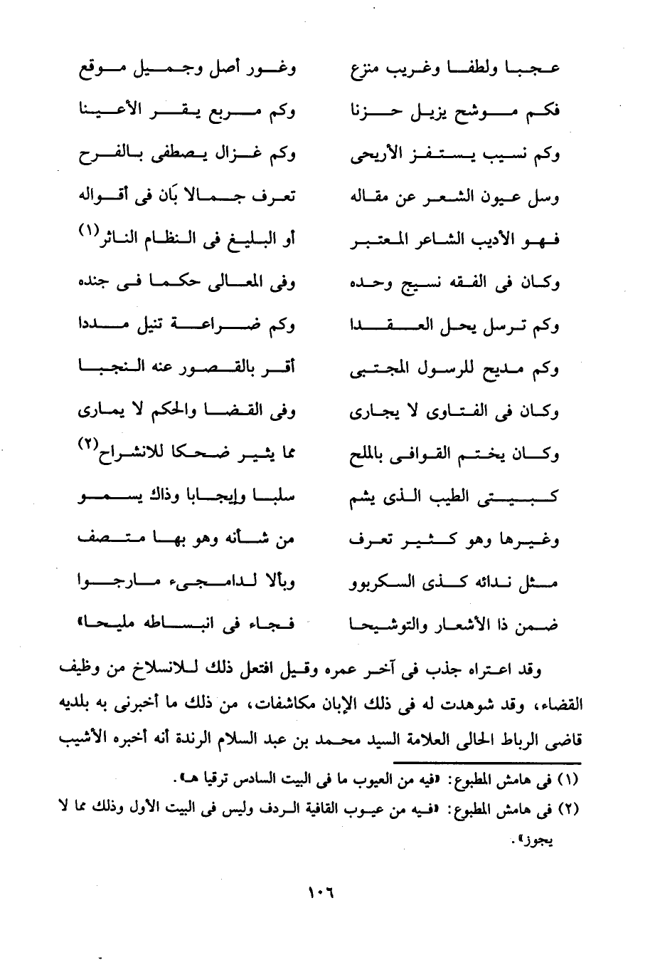 (¬1) في هامش المطبوع: "فيه من العيوب ما في البيت السادس ترقيا هـ".