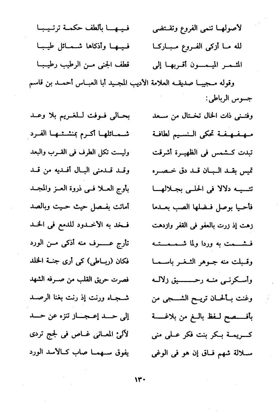 وقوله مجيبا صديقه العلامة الأديب المجيد أبا العباس أحمد بن قاسم جسوس الرباطى: