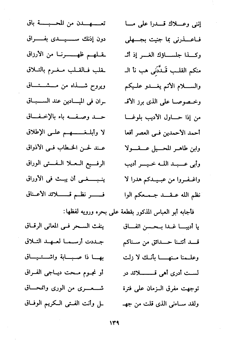 فأجابه أبو العباس المذكور بقطعة على بحره ورويه لفظها: