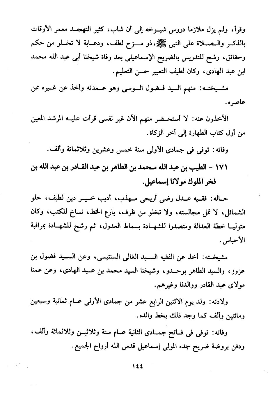 171 - الطيب بن عبد الله محمد بن الطاهر بن عبد القادر بن عبد الله بن فخر الملوك مولانا إسماعيل.