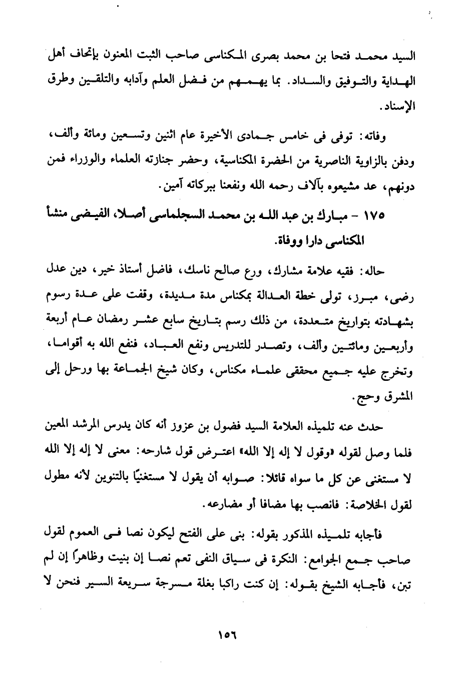 175 - مبارك بن عبد الله بن محمد السجلماسى أصلا، الفيضى منشأ المكناسى دارا ووفاة.