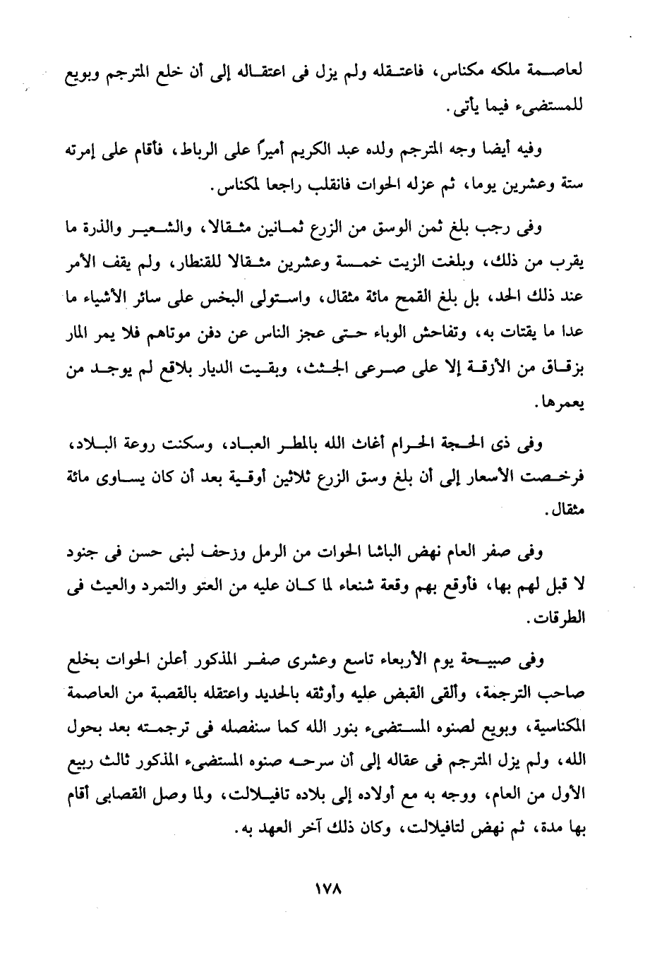وفى ذى الحجة الحرام أغاث الله بالمطر العباد، وسكنت روعة البلاد، فرخصت الأسعار إلى أن بلغ وسق الزرع ثلاثين أوقية بعد أن كان يساوى مائة مثقال.