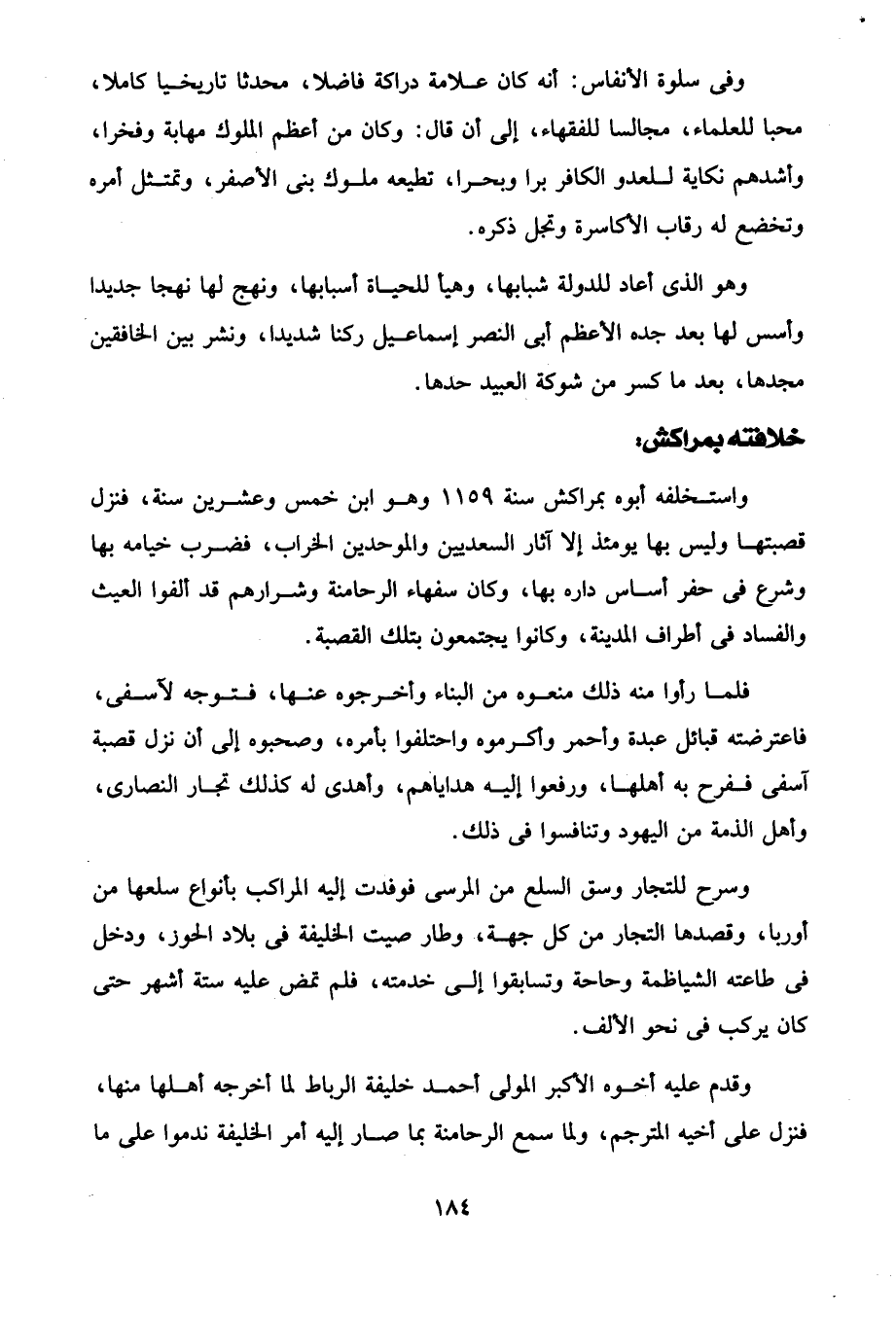 وسرح للتجار وسق السلع من المرسى فوفدت إليه المراكب بأنواع سلعها من أوربا، وقصدها التجار من كل جهة، وطار صيت الخليفة في بلاد الحوز، ودخل في طاعته الشياظمة وحاحة وتسابقوا إلى خدمته، فلم تمض عليه ستة أشهر حتى كان يركب في نحو الألف.