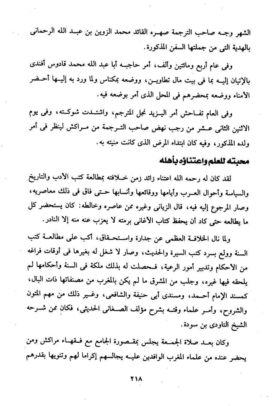 الشهر وجه صاحب الترجمة صهره القائد محمد الزوين بن عبد الله الرحمانى بالهدية التي من جملتها السفن المذكورة.