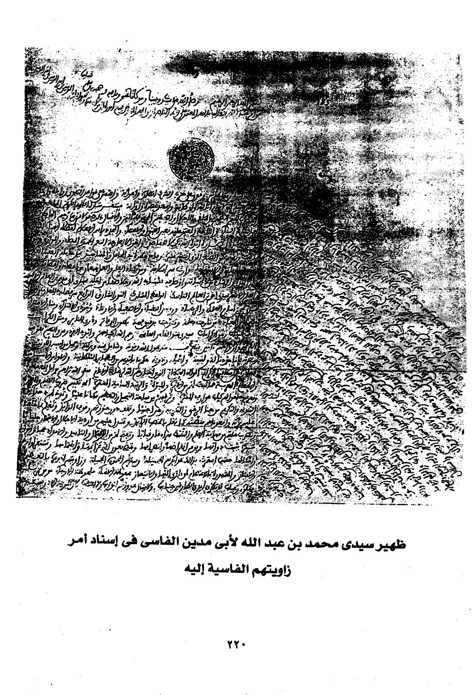 ظهير سيدى محمد بن عبد الله لأبى مدين الفاسى في إسناد أمر زاويتهم الفاسية إليه