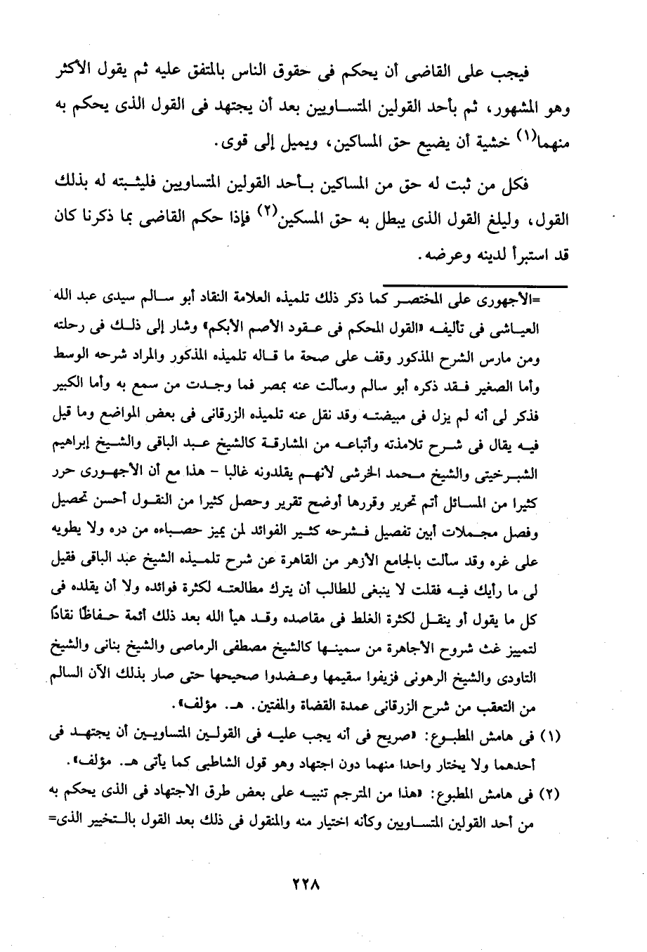 (¬2) في هامش المطبوع: "هذا من المترجم تنبيه على بعض طرق الاجتهاد في الذى يحكم به من أحد القولين المتساوين وكأنه اختيار منه والمنقول في ذلك بعد القول بالتخيير الذى =