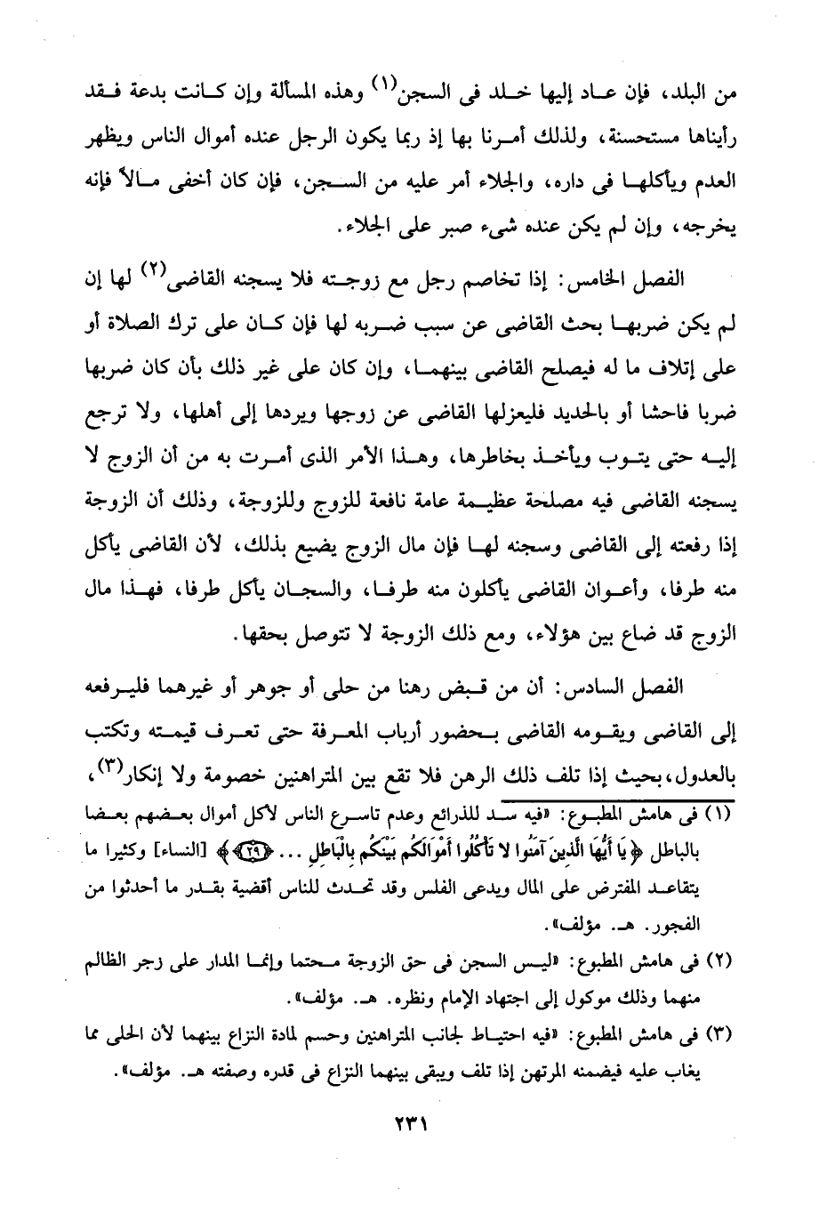 (¬2) في هامش المطبوع: "ليس السجن في حق الزوجة محتمًا وإنما المدار على زجر الظالم منهما وذلك موكول إلى اجتهاد الإمام ونظره. هـ. مؤلف".